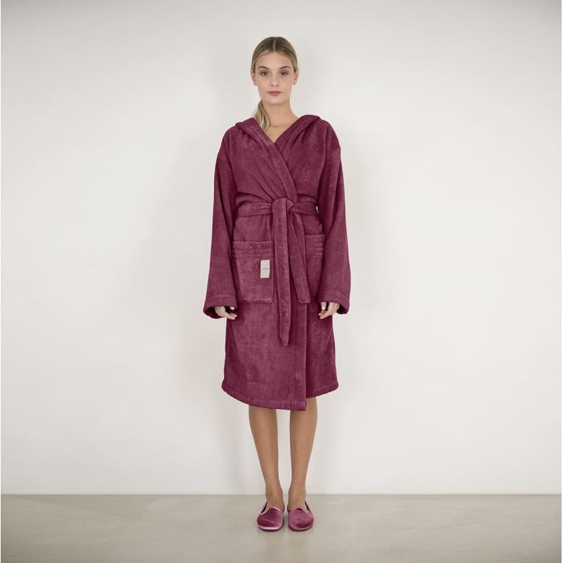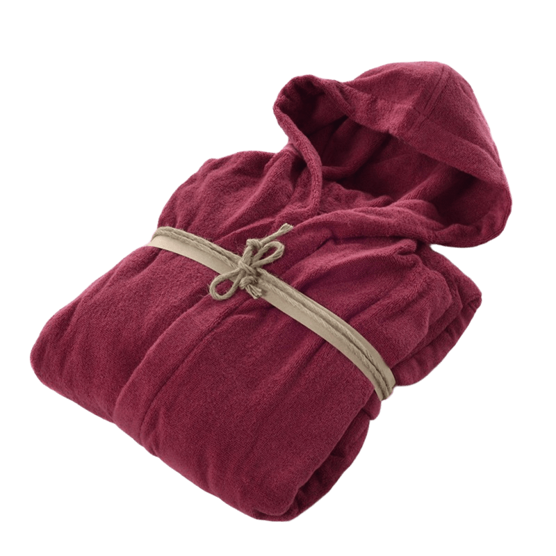 Articolo: COCCOLA ACCAPPATOIO RUBINO CON CAPPUCCIO IN SPUGNA DI PURO COTONE ZERO TWIST FAZZINI HOME